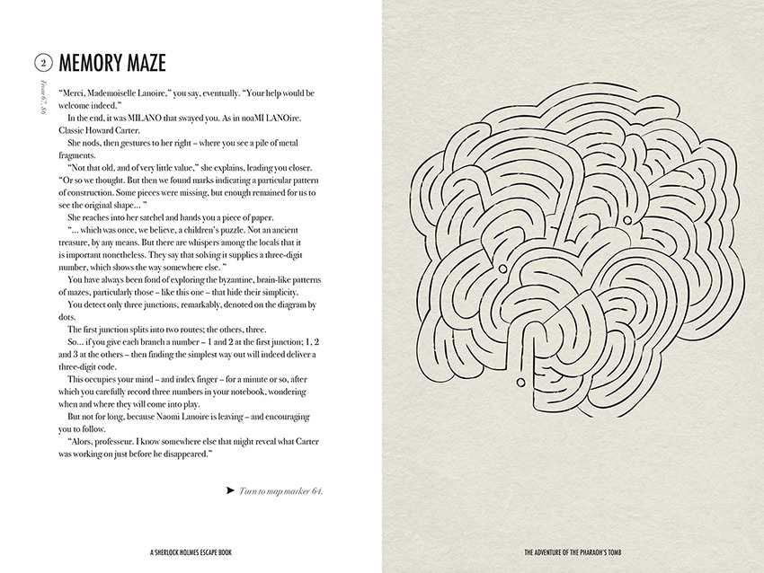 A Sherlock Holmes Escape Book: The Adventure of the Pharaoh’s Tomb is a unique form of puzzle book, in which the reader must solve the riddles to escape the pages.