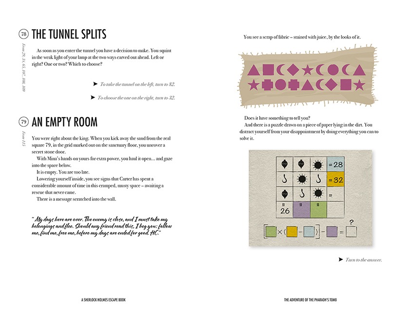 The seventh title in this ingenious series of Sherlock Holmes Escape BooksThe Adventure of the Pharaoh’s Tomb is an exhilarating combination of escape room, puzzle book and adventure story. Readers will take on the role of the world’s foremost consulting detective, Sherlock Holmes, as he embarks on a journey full of twists and turns.